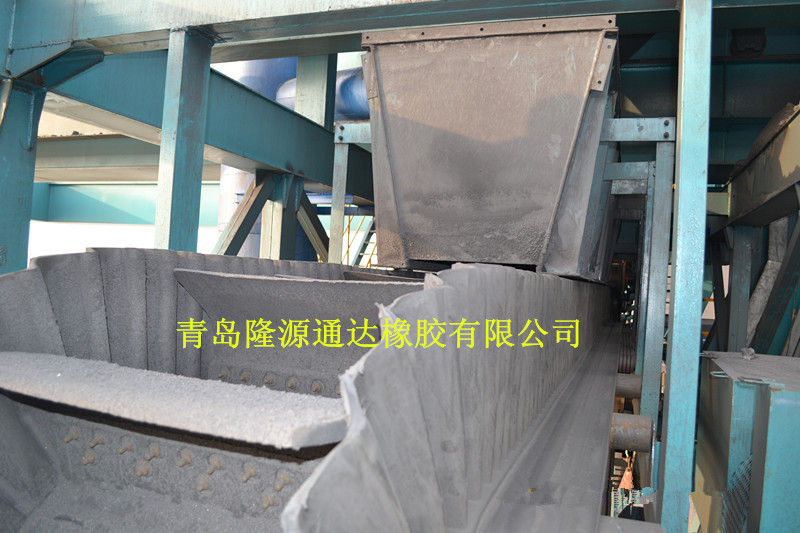 6、在使用大倾角挡边输送带时,应加强基带的横向刚性,避免造成挡边与隔板的磨损。